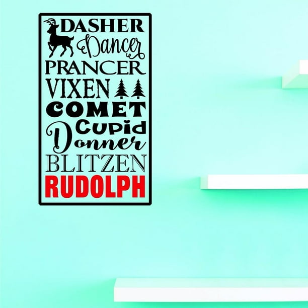 Custom Decals Dasher Dancer Prancer Vixen Comet Cupid Donner Blitzen Rudolph Wall Art Size 12 X 18 Inches Color Multi Walmart Com